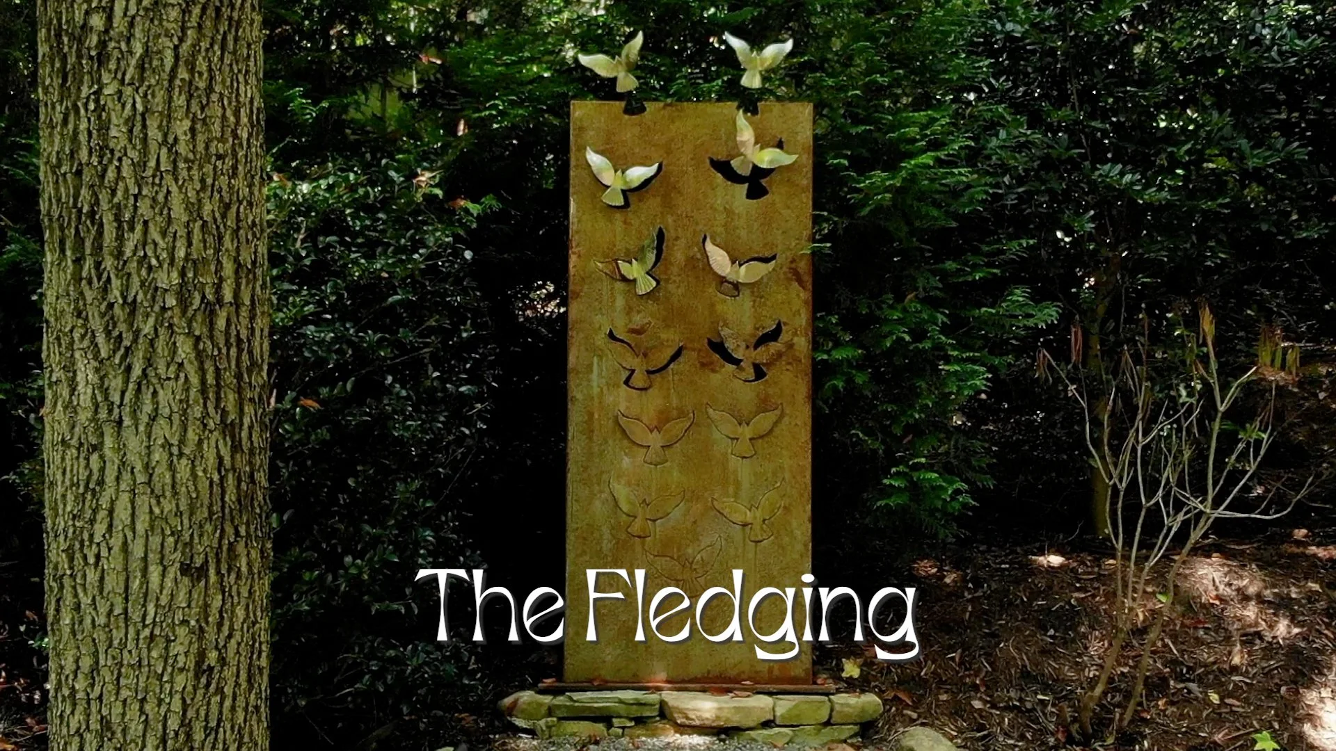 Patsy commissioned artist and educator Jarod Brown to create a unique sculptural work for the garden. The work is titled, Fledging which is the stage in a bird’s life between hatching and becoming capable of flight.